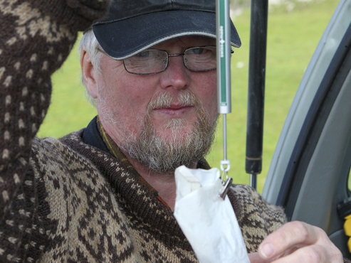 Kurt veier og måler alle fossekaller, voksne og unger, før de merkes med fargeringer